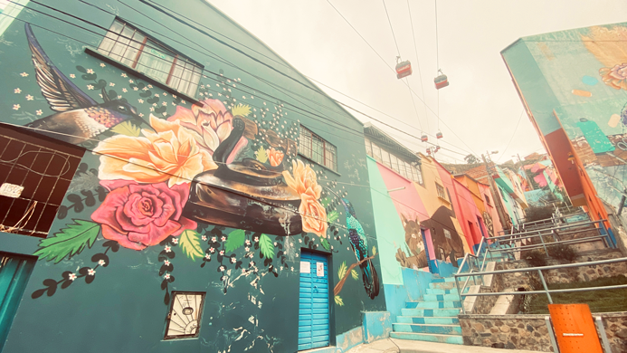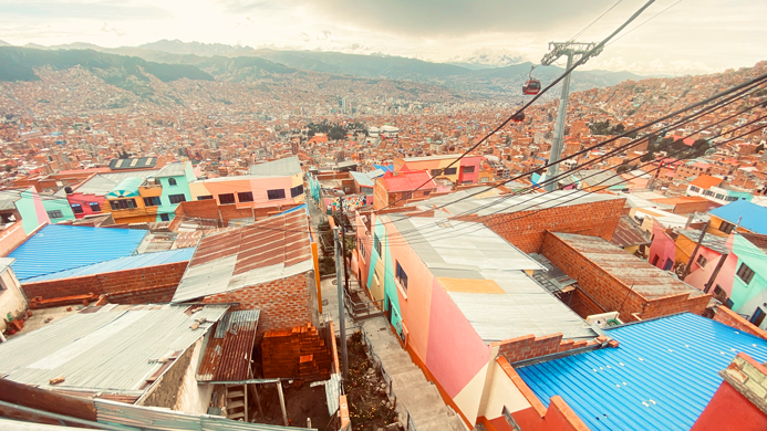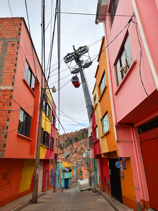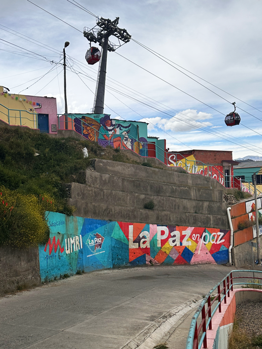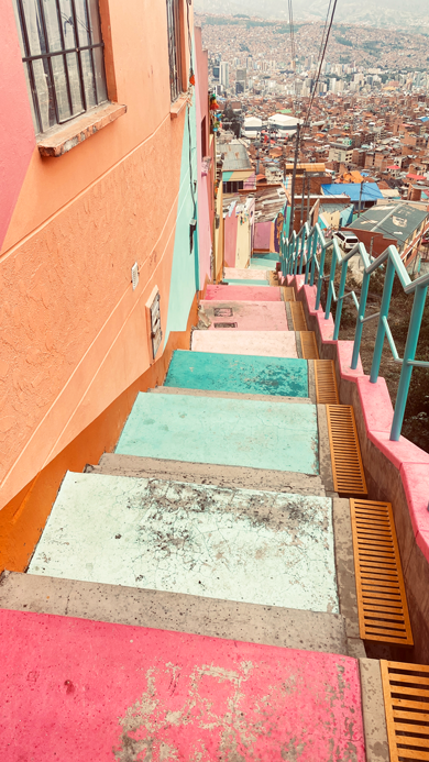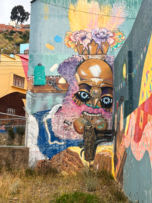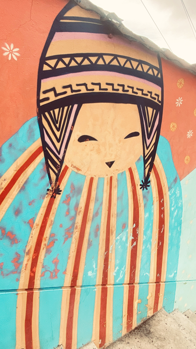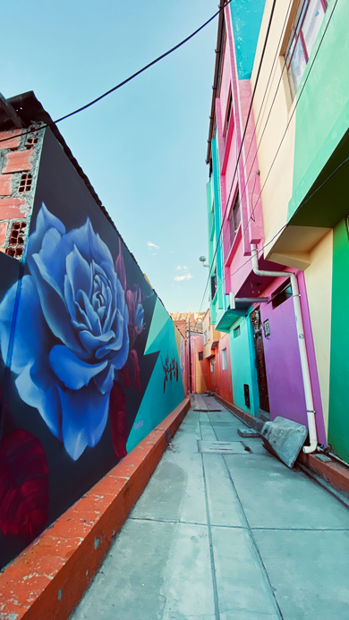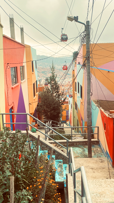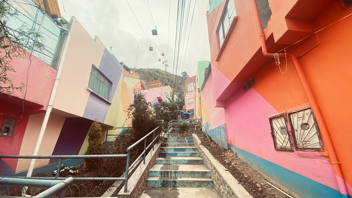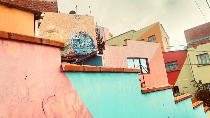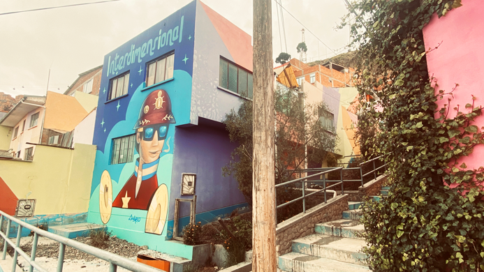 Was einst ein eher unscheinbarer Hügel am Rand der Stadt war, hat sich durch ein einzigartiges Urban-Art-Projekt in ein lebendiges Open-Air-Kunstwerk verwan-delt. Hunderte von Häusern wurden in leuchtenden Farben bemalt, Treppen mit geometrischen Mustern geschmückt, und überall entdeckt man Wandbilder, die bolivianische Mythen, indigene Traditionen und moderne Themen verbinden.