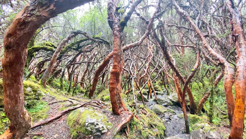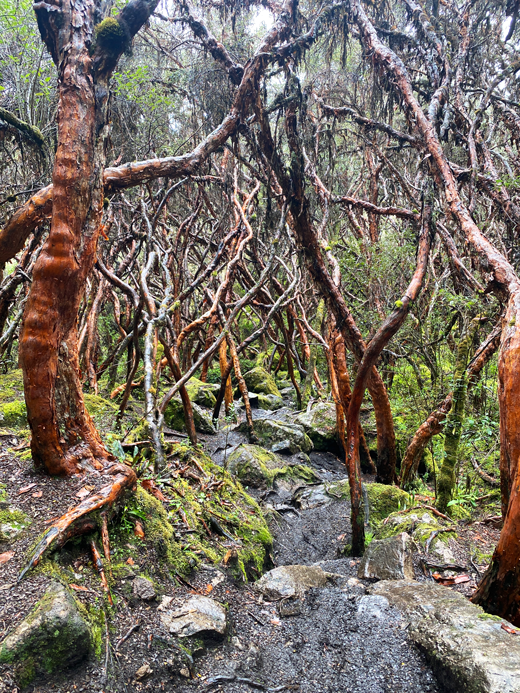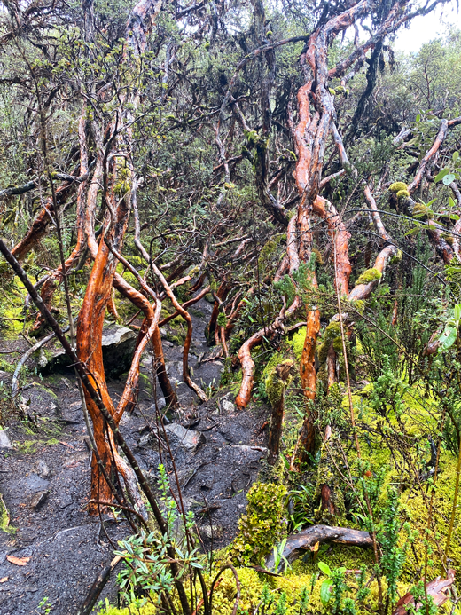 Spektakuläre Polylepis-Wälder (Papierrindenbäume), Moose und Flechten.
