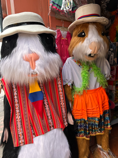 Cuy asado (Meerschweinchen), Locro de papa (Kartoffelsuppe), Tamales.