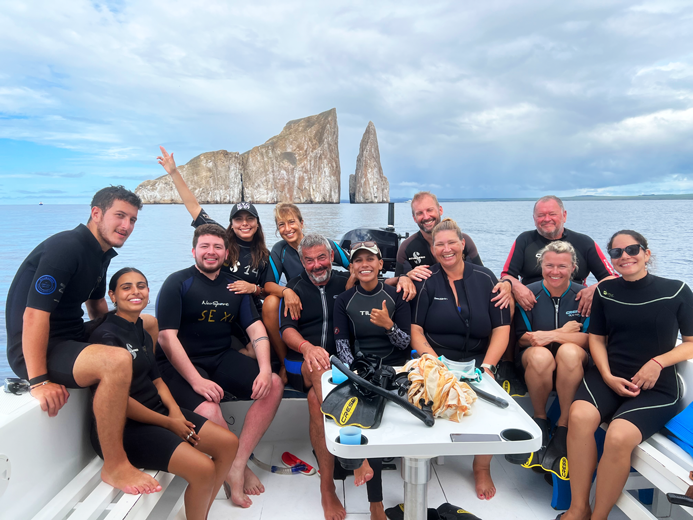 Wenn Hammerhaie auf deiner Bucket List stehen – und du dir keine Tauchsafri leisten kanns – ist der beste Ort auf Gaslapagos: Kicker Rock (Wir habne leider keine gesehen. Es war trotzdem ein krasser Schnorchel-Spot)