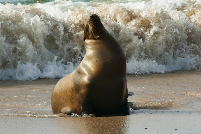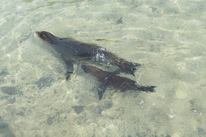 Wilde Küste mit vielen Seelöwen & Schnor-chelspots. Zusätzlich gibt es einen Wander-weg die Felsen hoch zu Seevögeln (Möwen und Tölpeln)