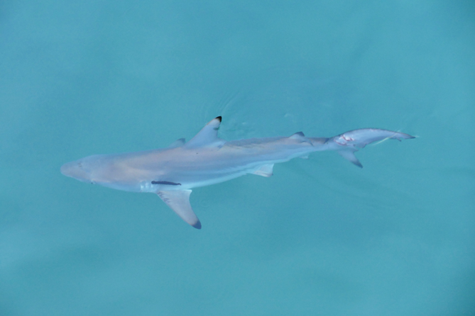 Schnorcheln mit Haien und Schildkröten kurz vor der Darwin-Station (in Stadtnähe Puerto Ayora)