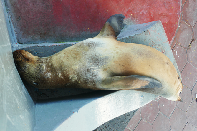 Das Essen ist ganz gut und günstig, die Erlebnisse im Hafen aber unbezahlbar. Es gibt für uns for free: (wenn man mal die 400$ großzügig wegignoriert) Meeresschildkröten, Haie, Rochen, Fiche, Meeresechsen, Pelikane, Seelöwen … Es ist einfach unfassbar, was hier einfach so rumliegt oder im Wasser schwimmt.