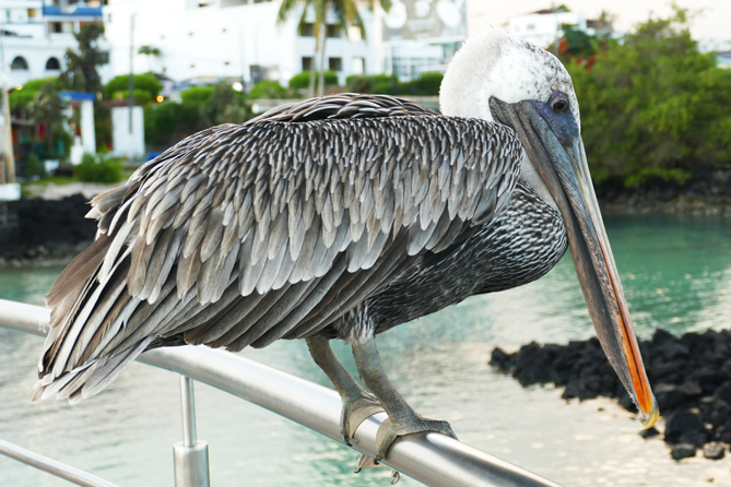 Auf dem Fischmarkt von Puerto Ayora und (vor allem abends) am Pier tummelt sich allerlei Getier, das auf Reste des Tagesfangs warten.