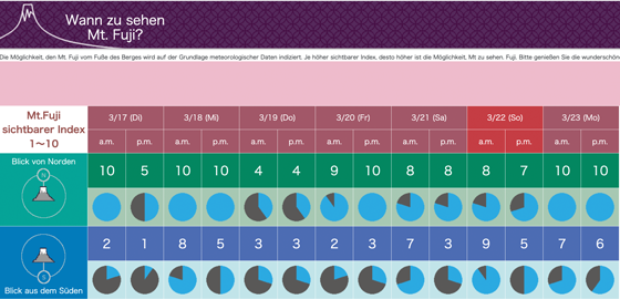 Gibt die Wahrscheinlichkeit der Sichtbarkeit von Mt. Fuji für die nächsten Tage an