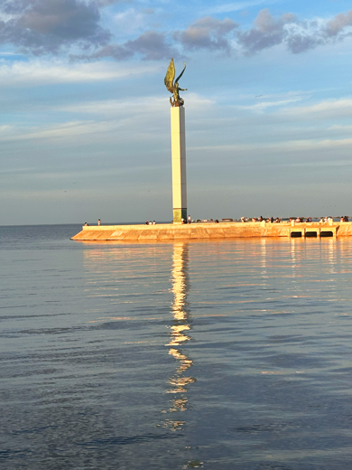 Zum Sonnenuntergang ans Meer und den  Blick auf den Golf von Mexiko genießen. Und um 20 Uhr zur Fontänen-Licht-Show.