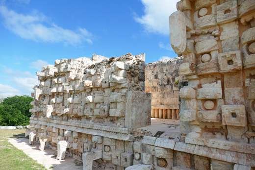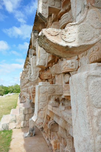 Die Stätte ist weniger überlaufen und bietet eine ruhigere Atmosphäre. Die Hunderte von Chaac-Masken, die den Regengott dar-stellen, am Palast der Masken (Palacio de los Mascarones) sind einzigartig und zeigen die Bedeutung des Regengottes in der Maya-Kultur.