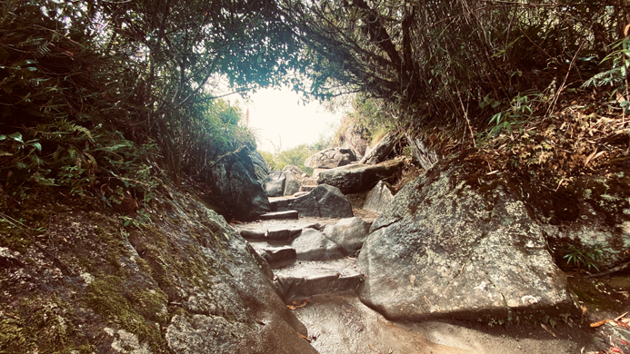 Wir haben Tickets für die Route 2 – die beinhaltet sowohl einen Aussichtspunkt über die Stadt, als auch einen Spaziergang durch due Stadt. Verlassen darf man die Route genauso wenig, wie auf ihr zurückgehen. Durch das miese Wetter staut es sich etwas, weil alle auf den Moment warten, in dem sich sie Wolken lichten und die Stadt zu sehen ist.