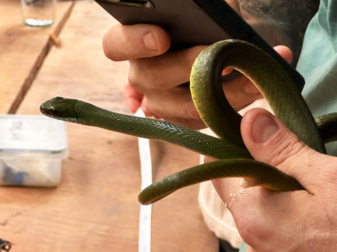 Die Secret Forest Station bietet auf ihrer homepage (noch im Umbau) Touristentouren an – die waren zu unseren Terminen allerdings ausgebucht. Über whatsApp konnte ich aber mit einem Mitarbeiter unsere 4 Tage planen. Sprich, wir haben auf der Station in den Schlafsälen der Volontäre/Mitarbeiter geschlafen, in der Gemeinschaftsküche gegessen und durften alle Touren der Station begleiten: Vogelberingung morgens, Schlangen- und Amphiebiensuche abends/nachts, Säugetiersuche abends, Fledermaus-Chippen abends, Freilassung von Schlangen, Agroforstwirtschaft, freies Bewegen auf der Station (mit Aras und Affen in den Bäumen und zu guter Letzt einem Ausflug zum Bird-Tower und Urwaldbaum (bekannt aus Mission Peru)
