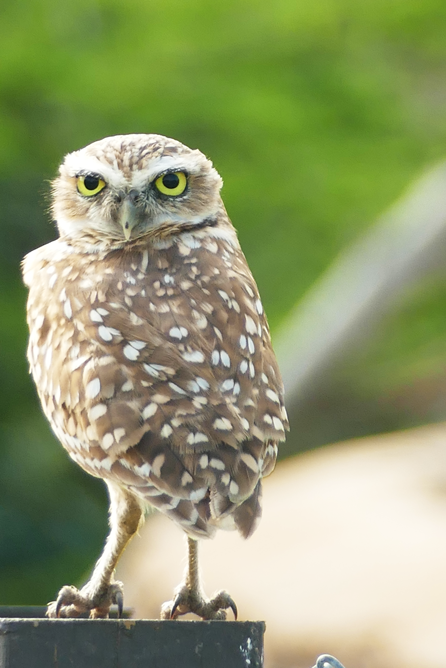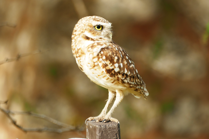Die Kanincheneule – auf Aruba liebevoll Shoco genannt – ist eines der tierischen Wahrzeichen der Insel. Sie ist klein, hat große gelbe Augen und wirkt mit ihrem aufrechten Stand fast ein bisschen wie eine Karikatur einer Eule. Anders als die meisten ihrer Verwandten lebt sie nicht in Bäumen, sondern am Boden. Ihren Namen trägt sie deshalb, weil sie sich ihre Nester in selbstgegrabenen Höhlen oder verlassenen Kaninchenbauten anlegt.