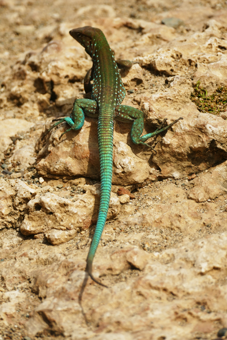 Weil sie so aktiv und neugierig sind, begegnen dir die Echsen fast überall: in den Dünen, zwischen Kakteen, auf Felsen und sogar rund um Hotels oder Häuser. Oft rennen sie blitzschnell vor deinen Füßen davon, bleiben aber auch gern mal kurz stehen, um dich anzuschauen.