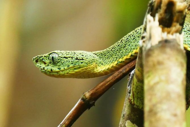 Willkommen in der Welt der Grünen Jararaca (Bothrops bilineatus), einer der schönsten Schlangen Südamerikas.
