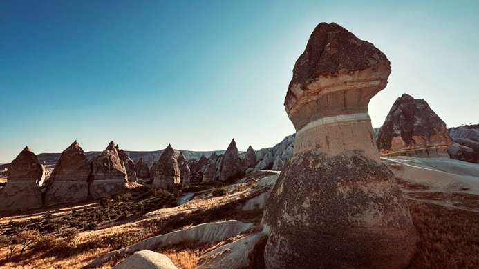Da heute keine Ballons fliegen, schlafen wir bis 7:00 „aus” und ich mache mich auf zum Rabat Rock, Sword Valley und Rocket Valley. Selten erwähnt, aber von Göreme aus am schnellsten zu erreichen und völlig unterschätzt. Ich auf jeden Fall habe sehr coole 1 1/2 Stunden.