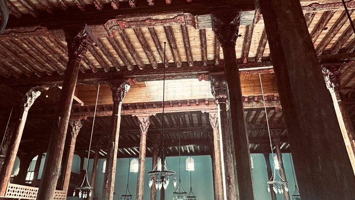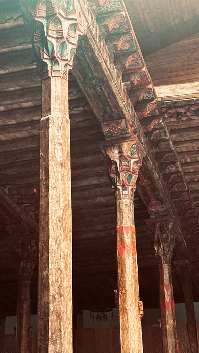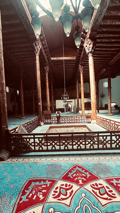 Die Moschee besitzt ein Loch in der Mitte des Dachs – im Winter fiel dort Schnee hinein, der in einer Zisterne gesammelt wurde. Das Schmelzwasser hielt das Holz feucht und schützte es vor dem Austrocknen und Reißen. Gleichzeitig sorgte es für Kühlung im Sommer. Eine Art natürliche Klimaanlage also!