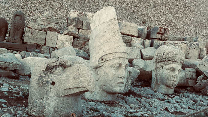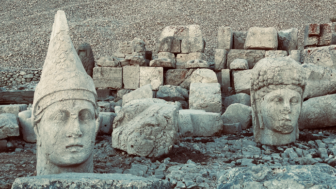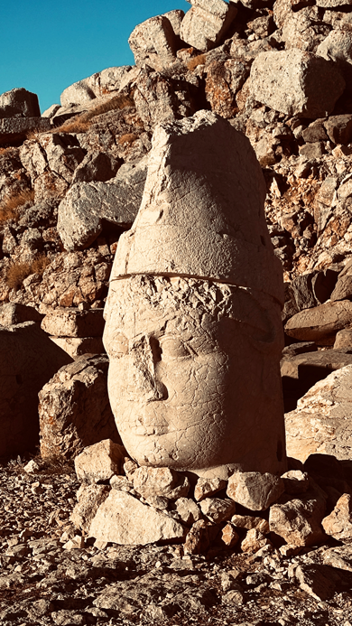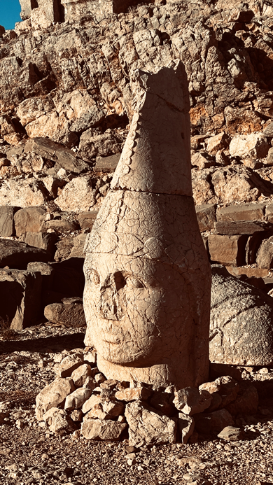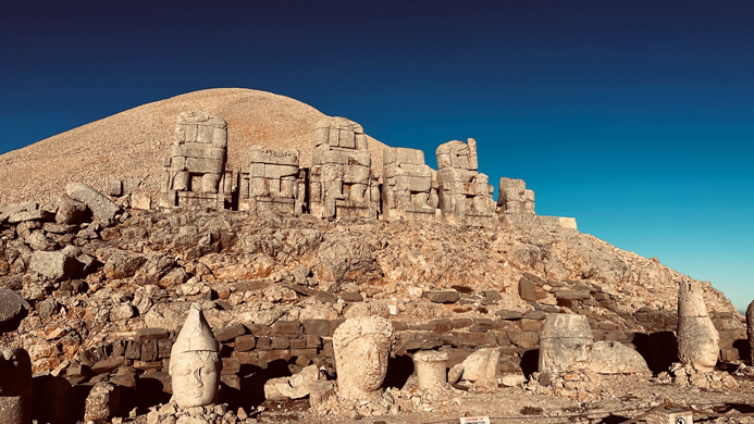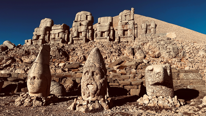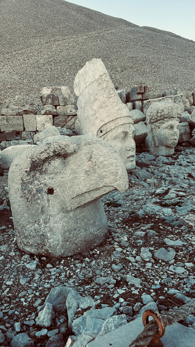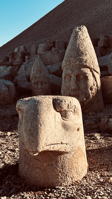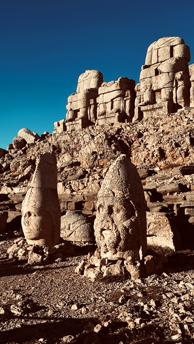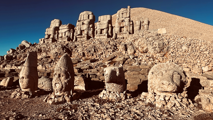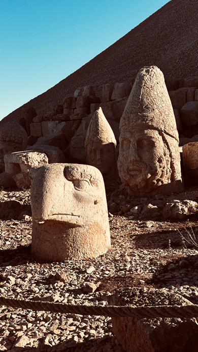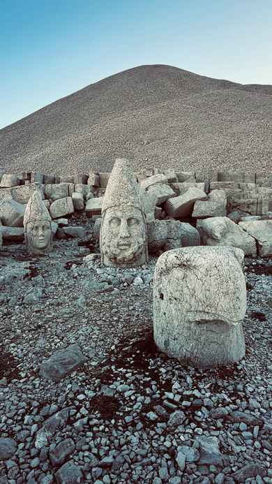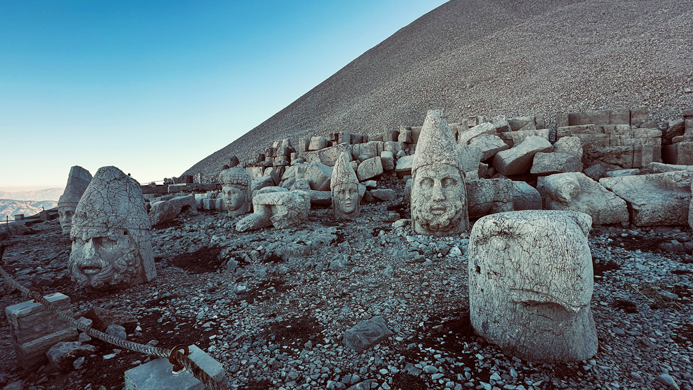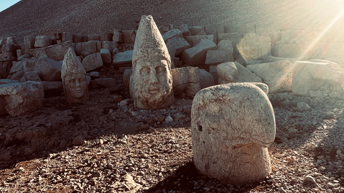 Der Berg gehört zum UNESCO-Weltkulturerbe und wurde im 1. Jahrhundert v. Chr. von König Antiochos I. von Kommagene in eine gigantische Kultstätte verwandelt. Heute thront hier ein Schuttberg als Grabstätte, flankiert von den ikonischen Steinstatuen – Zeus, Apollon, Herakles, Adler, Löwe und Antiochos selbst.