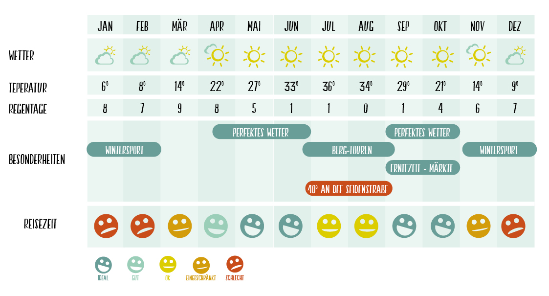 Beste Reisezeit für eine Usbekistan-Rundreise